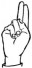 На ћирилици написано БОГДАН БОЛУНОВИЋ састоји се из 15 слова [?]. Исписано ћириличном једноручном азбуком за глувонеме: